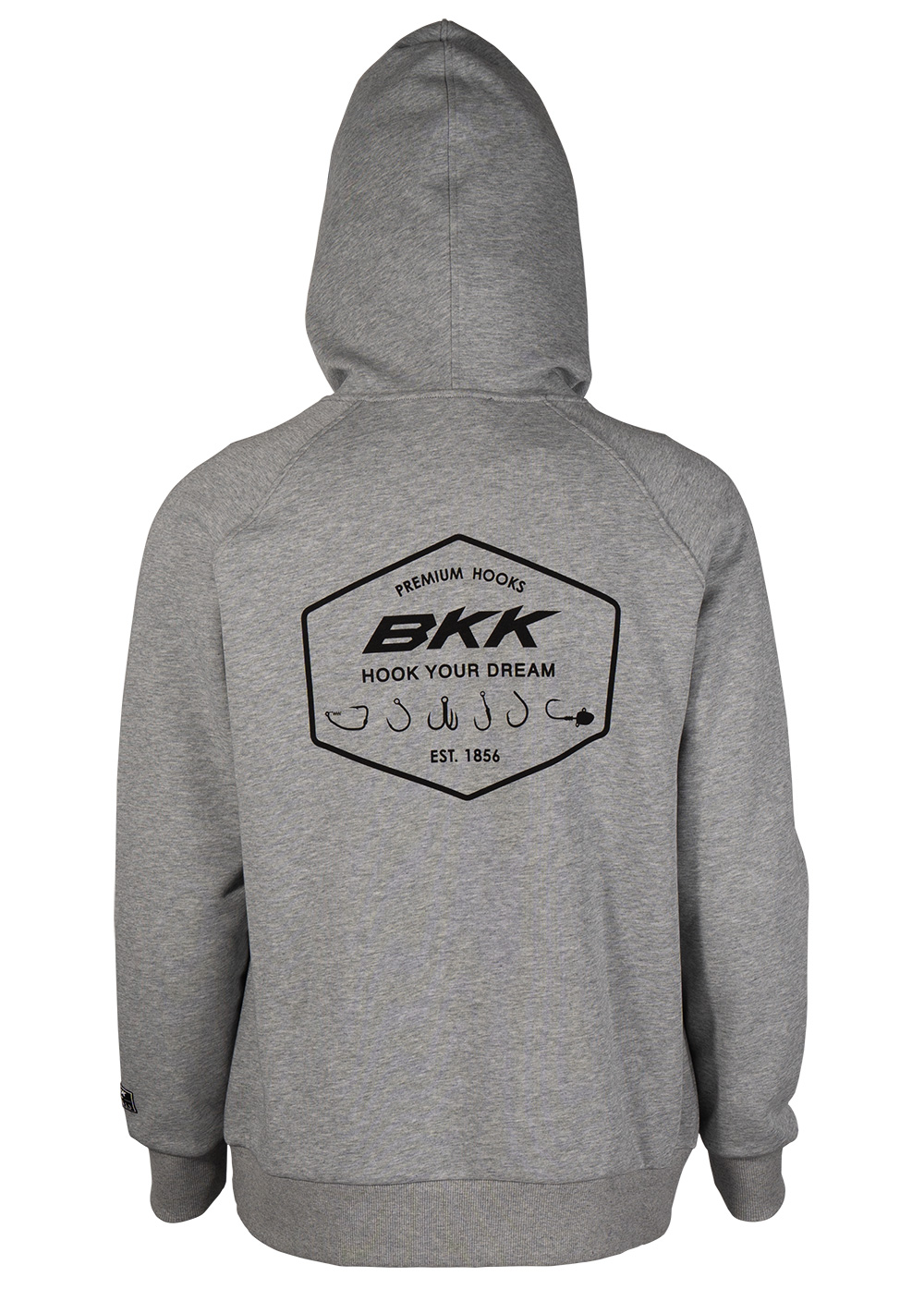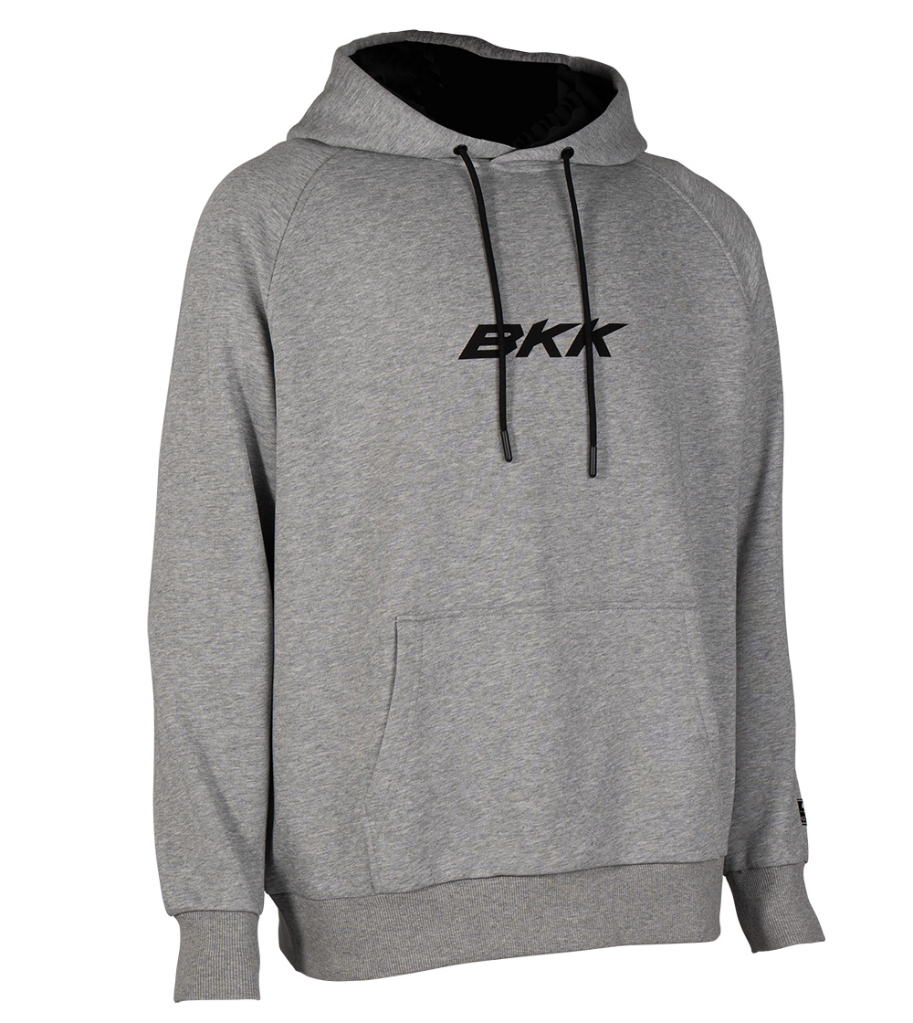 Grey features a spacious kangaroo pocket for storing small fishing gear and other essen tails. Adorned with BKK graphics on the chest and back, this hoodie is set to become a