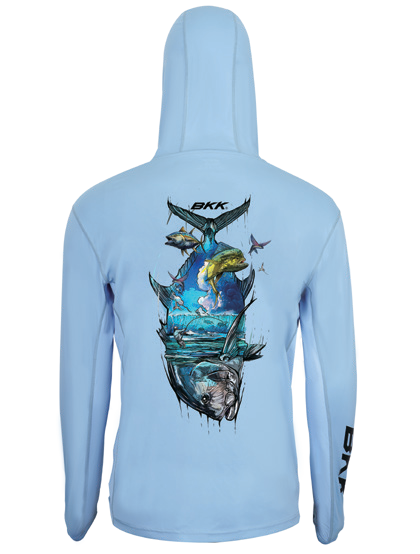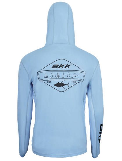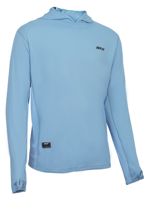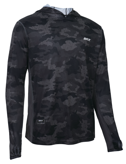 The new and upgraded BKK Long Sleeve Performance Shirt now comes in a hooded version for added coverage to protect your head and neck from intense sunlight. The fabric provides ultimate UV protection (UPF 50+) and quick drying for all-day comfort. The thumbholes keep the sleeves in place, and the mesh panels on both sides of the body provide excellent side and pit venting to keep you cool. The new camo pattern offers a stylish on-the-water fashion for the most avid anglers.